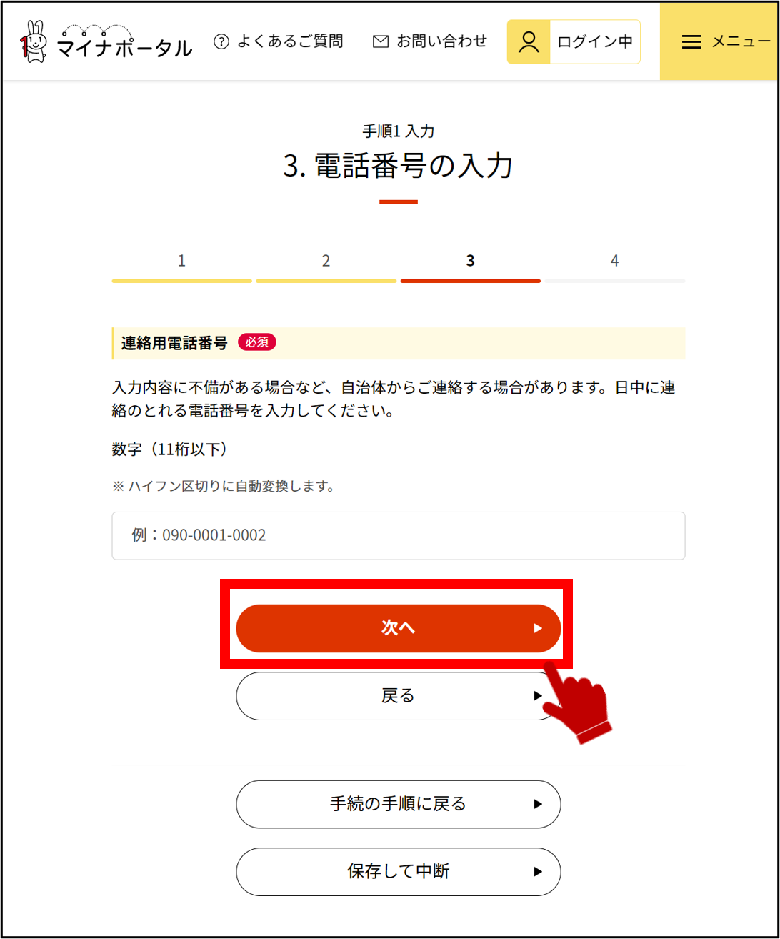 4-5: 電話番号を入力する 【4/9ステップ】