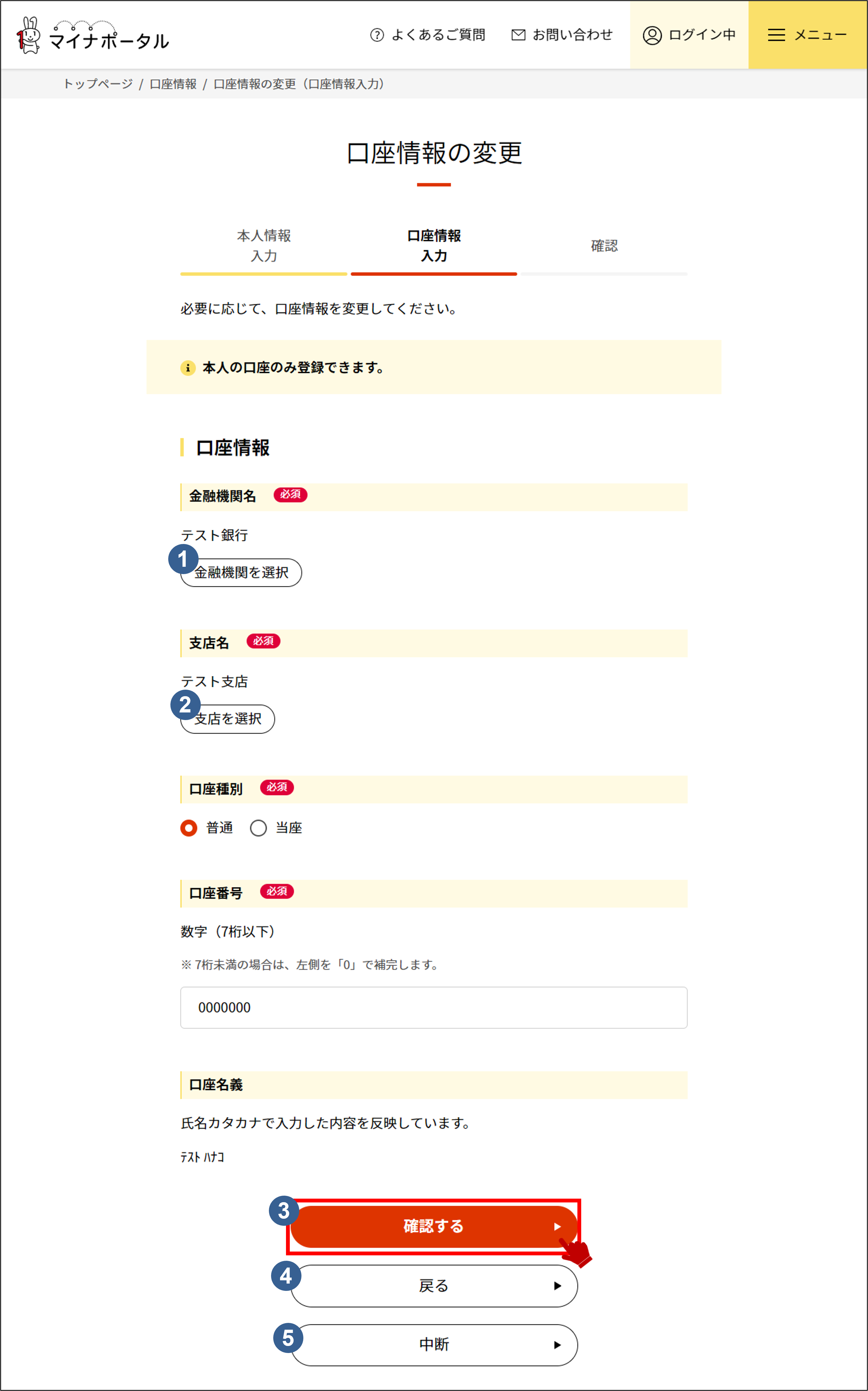2: 口座情報の登録状況を確認する 【2/7ステップ】