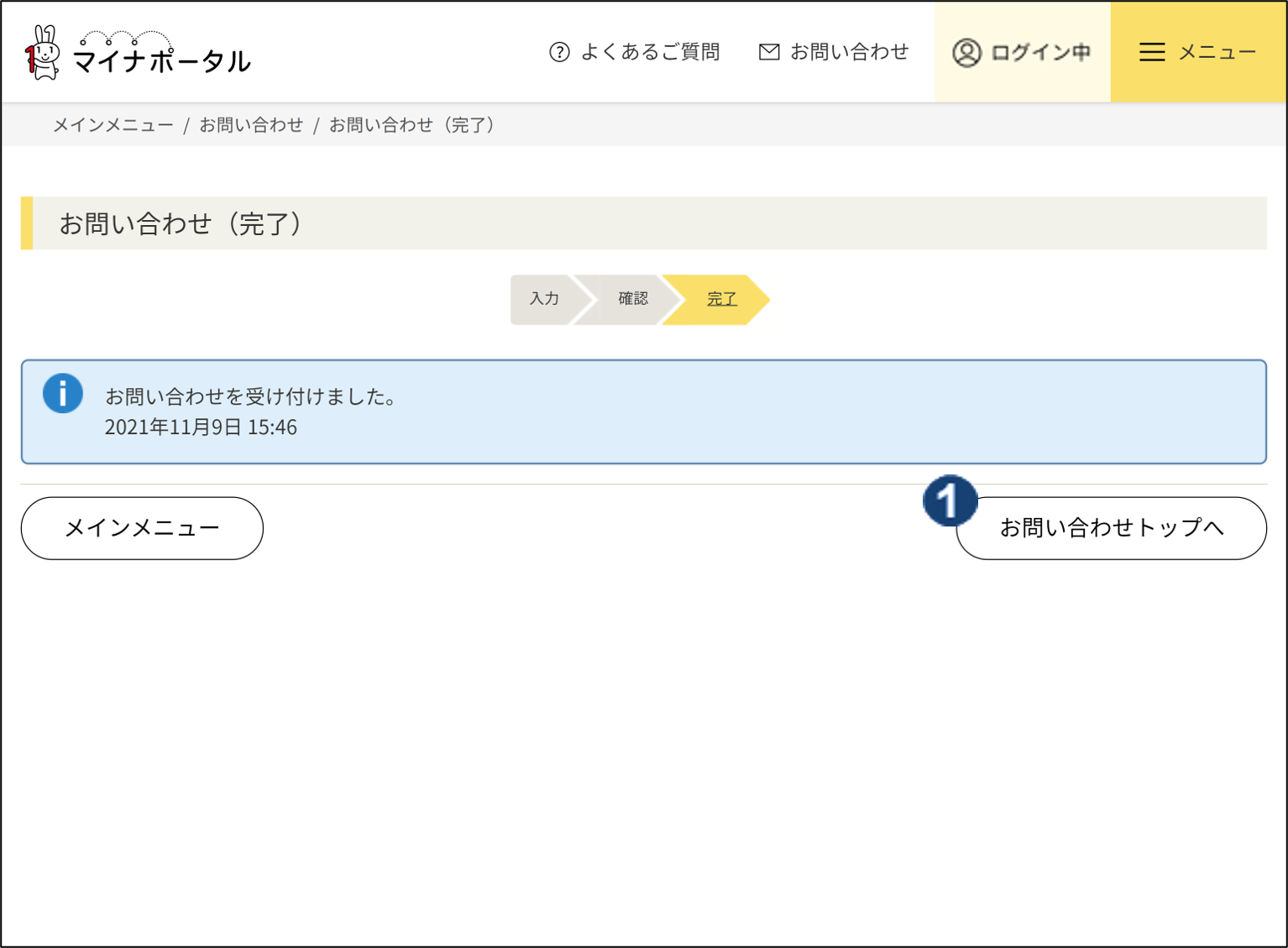 マイナポータルの操作に関するお問い合わせ内容を登録する操作を説明します。